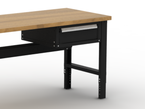 They’re available in both a single and double drawer configuration, and are designed to mount easily to the underside of all sizes and styles of industrial workbenches utilizing adjustable steel angles.